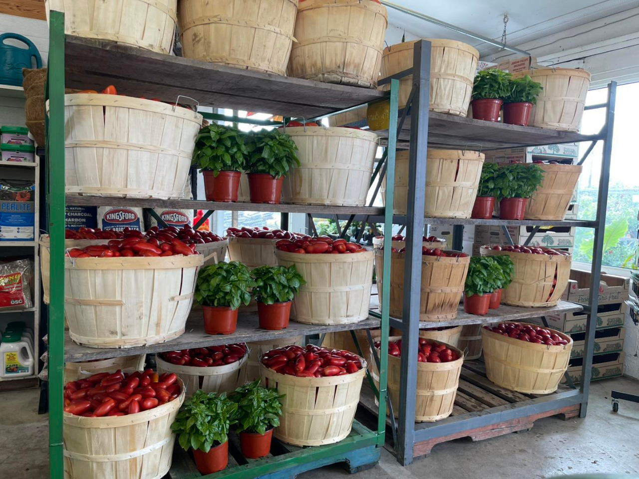 Vegetable starter plants arrive, including tomatoes, peppers, cucumbers, zucchini, kale, and lettuce.